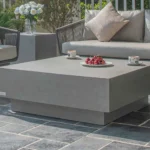 Die ästhetische Wirkung eines Betontisches entsteht nicht allein durch sein Material, sondern ebenso durch seine Form. Runde und organische Silhouetten erzeugen eine ruhige Weichheit, die sich harmonisch zwischen Pflanzen, Outdoor-Textilien und natürlichen Farbtönen einfügt. Sie wirken oft wie ein natürlich gewachsener Bestandteil des Gartens. Konische oder skulpturale Formen bringen dagegen Struktur in weitläufige Gartenflächen. Sie erscheinen wie kleine architektonische Interventionen: bewusst gesetzt, präsent, jedoch niemals dominant. Besonders in modernen Gartensettings unterstützen sie die räumliche Ordnung, wo Linien, Wege und Sichtachsen eine wichtige Rolle spielen. Rechteckige oder sehr flache Plateauformen hingegen betonen die horizontale Spannung eines Raumes. Sie eignen sich hervorragend für Lounge-Bereiche, da sie den Blick auf einer niedrigen Ebene führen und so die Großzügigkeit einer Terrasse unterstreichen – ein visueller Trick, der häufig in Boutique-Hotelanlagen verwendet wird.